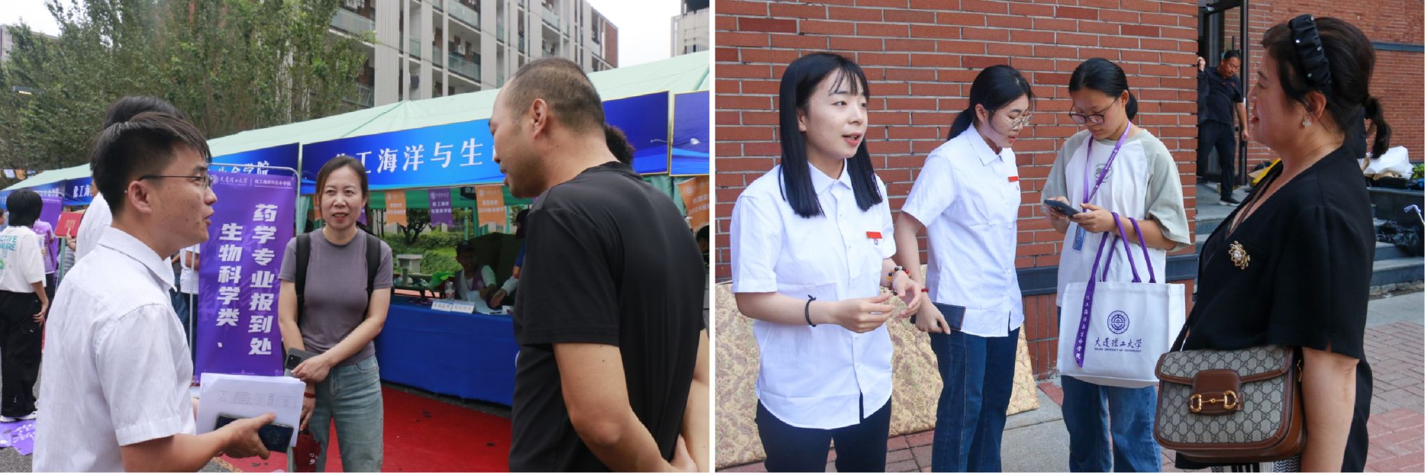 辅导员老师在迎新现场耐心与新生和家长沟通交流,为新生和家长答疑解惑。