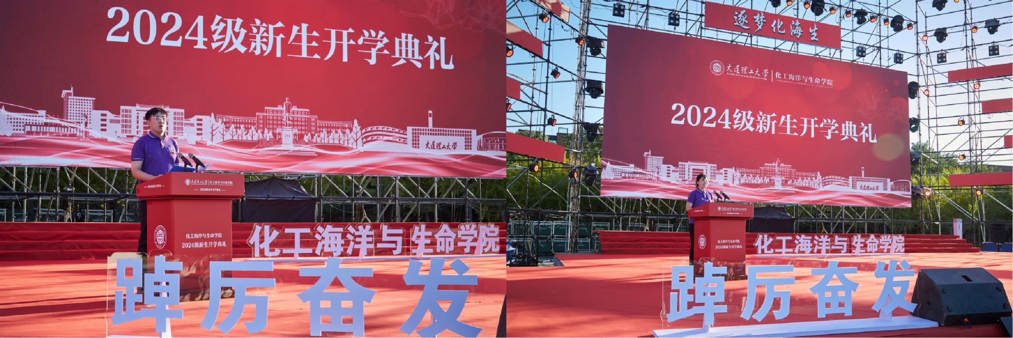 典礼上,本科生代表黄毕笑和研究生代表陶幽杰作为2024级新生代表发言。