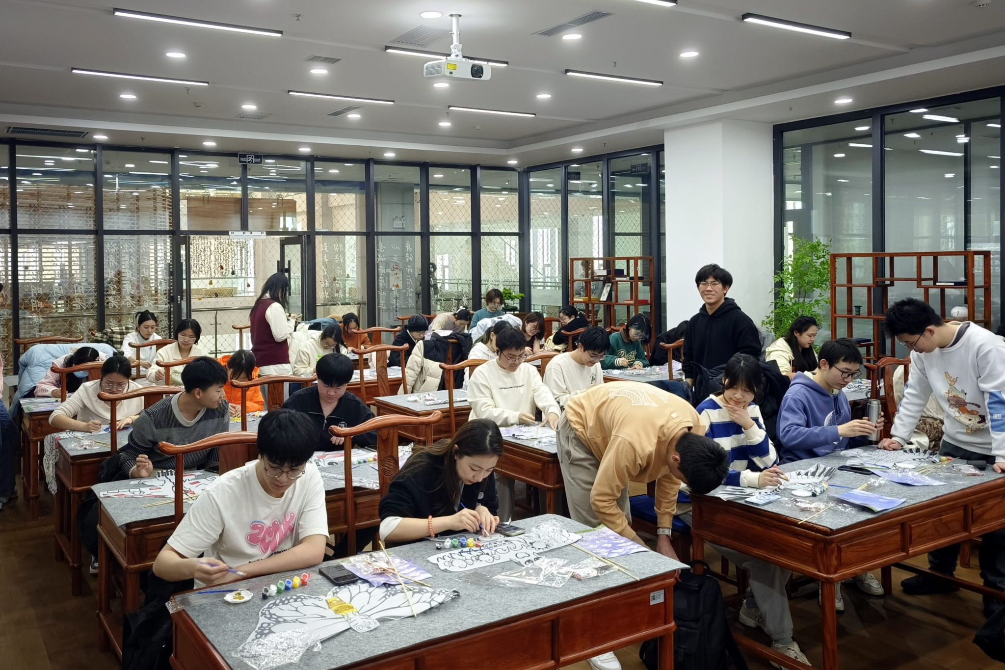 午后阳光煦暖,图书馆红海学堂的长桌上铺开素白风筝与各色颜料,一场充满创意的手绘风筝活动就此展开。参与者以“二十四节气”“古诗词意象”为主题自由创作:有的用工笔勾勒出“儿童散学归来早,忙趁东风放纸鸢”的童趣画面,生动地展现了古代儿童在春日里放飞风筝的欢乐场景;有的用泼墨点染出“江南春色旧曾谙”的烟雨意境,将江南水乡的朦胧美与春日的生机巧妙融合;还有学生将大工精神“海纳百川、自强不息、厚德笃学、知行合一”化作抽象纹样融入设计,赋予风筝独特的文化内涵与精神力量。