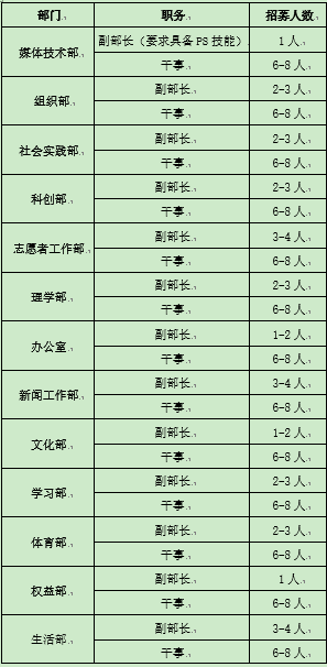 2. 团委、学生会各部门副部长要求由2019级学生担任;