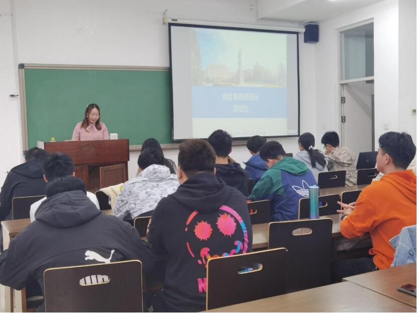 最后,闫磊代表自强社感谢商学院、知识产权学院晁苗苗老师的到来和对学院自强社工作的指导,接着从学院自强社成立初衷、学生干部的责任与使命等方面对同学们提出希望。