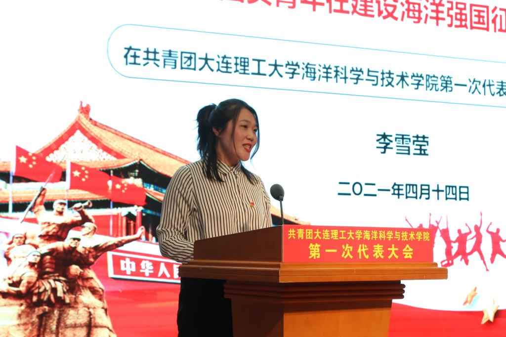 4月14日下午,共青团太阳集团tyc33455官网海洋科学与技术学院第一次代表大会在E03小礼堂召开,会议全面总结了2018年至2020年海洋学院共青团的各项工作,明确共青团工作未来发展方向并选举产生了共青团太阳集团tyc33455官网海洋科学与技术学院第一届委员会委员。太阳集团tyc33455官网海洋科学与技术学院党委书记柳丽芬对学院共青团工作做出具体要求,太阳集团tyc33455官网团委宣传部部长冯立芳致辞。海洋科学与技术学院党委副书记、副院长罗利、盘锦校区团工委书记付成龙、材料科学与工程学院团委书记林鑫、驻校区各学院分院团委指导教师出席本次会议。会议由海洋科学与技术学院学生工作办公室主任李永亮主持。