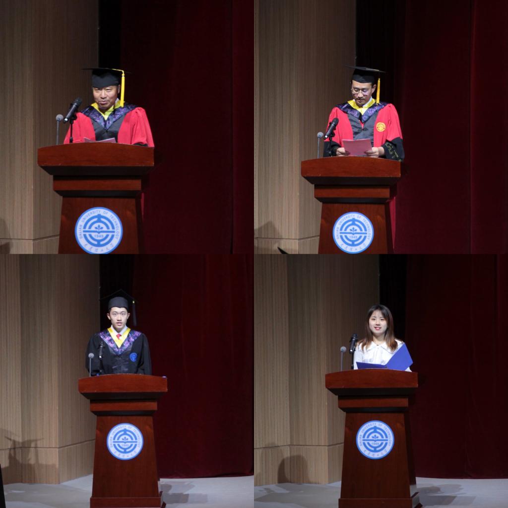 2017 级海洋技术专业刘轩渤代表毕业生发言,他表达了对母校和老师的感恩之情,并表示在今后的日子里将始终牢记大工人的使命与担当,发扬大工精神,为学校、学院争光添彩。2018 级食品科学与工程专业张程程代表在校生真诚地表达了对学长、学姐的祝福和感激,她表示今后将以学长、学姐为榜样,把握时机、努力学习,传承海洋精神。