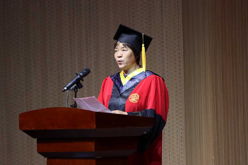 柳丽芬教授致欢送辞,她寄语同学们:第一,希望毕业生们成为有理想之人。希望大家带着大工人“脚踏实地”的精神,用扎实的步伐向实现理想的方向前进。第二,希望毕业生们成为肯奋斗之人。青春就是用来奋斗的,勇作人生之路的开拓者和新时代的奋斗者。第三,希望毕业生们成为敢担当之人。秉承“海纳百川、自强不息、厚德笃学、知行合一”的大工精神,创造、发现并应用知识,勇于担当社会责任,书写自己的人生华章!