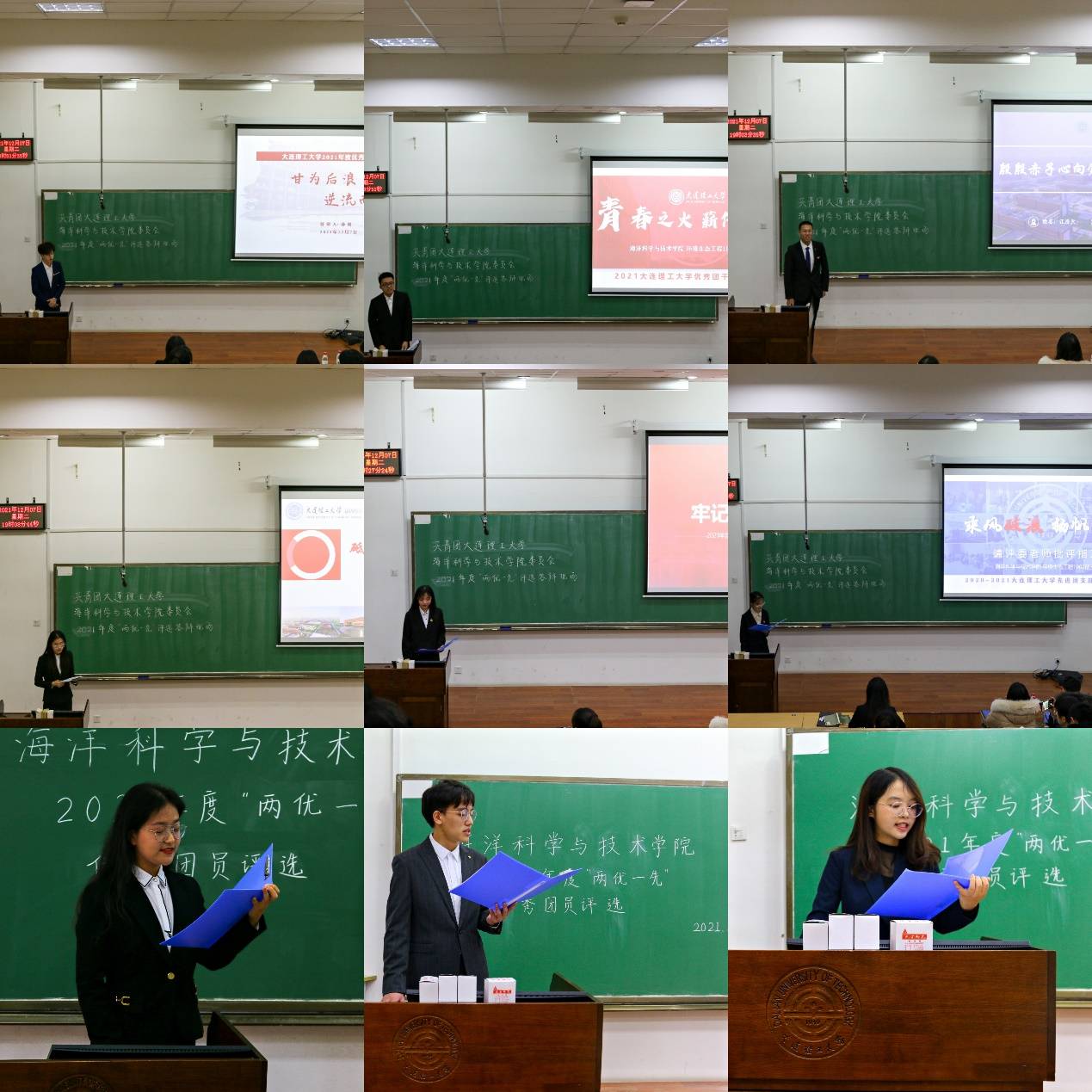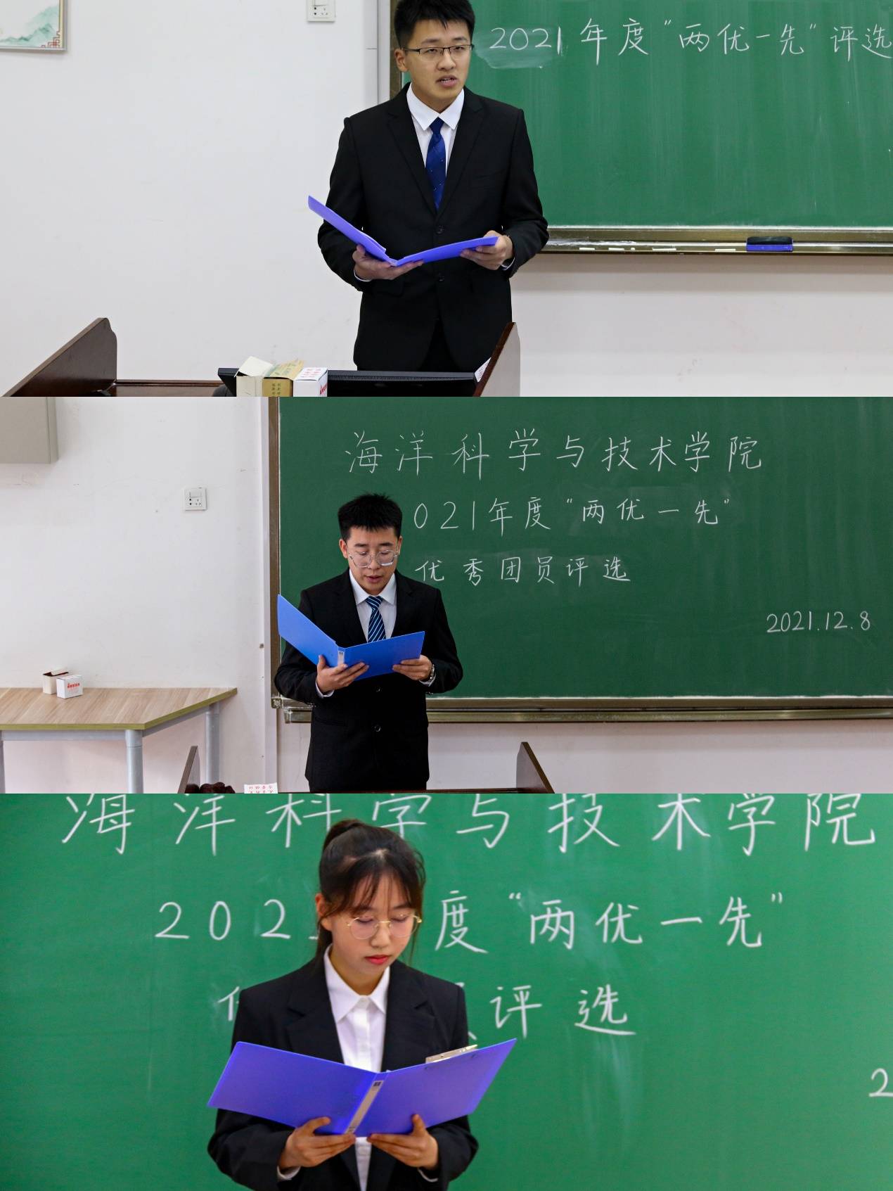 为深入学习贯彻习近平新时代中国特色社会主义思想和党的十九大精神,不断增强“四个意识”,坚定“四个自信”,做到“两个维护”,进一步加强基层团组织建设,表彰先进、树立典型、促进工作,让优秀的事迹鼓舞人,让榜样的力量带动人。海洋科学与技术学院于2021年12月7日、8日、9日三天在A01-N102、N103室举行2021年度“两优一先”答辩评选。