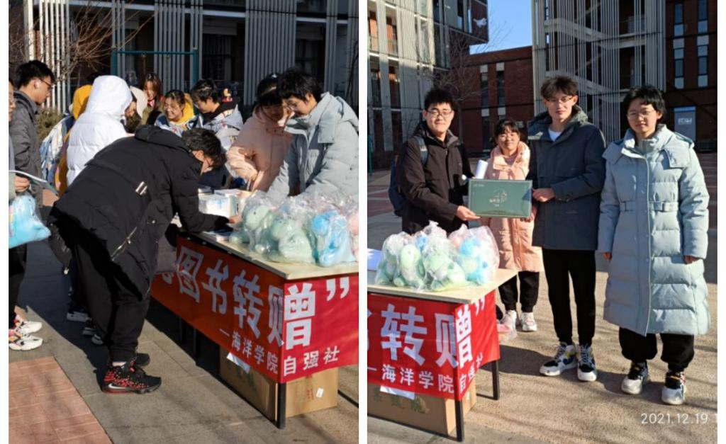 12月19日,自强社项目部成员在B10楼下进行图书发放。大一新生积极参与,排队登记并免费领取图书。同时参与捐赠的同学们进行了抽奖活动,领取自己心仪的小礼品。经过近一个月的努力,本次系列活动圆满结束,不仅阅享空间得到了扩充,海院也愈发成为一个充满知识与爱的大家庭。