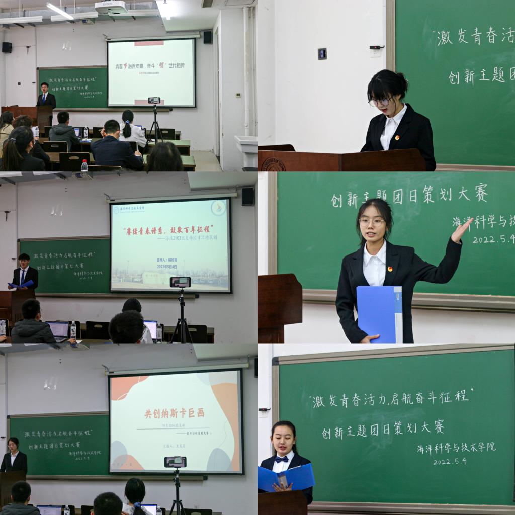 4月23日-5月4日,海洋学院举办以“激发青春活力,启航奋斗征程”为主题的团日活动策划大赛,于5月4日上午9:00在D07-107教室以线上线下结合的方式举办决赛答辩。本次大赛策划主题为“赓续青春谱系,致敬百年征程”、“青春献礼祖国,强国有我新征程”。本次大赛激励海洋学子共谋支部发展,勇担青年使命,传承红色基因,砥砺奋斗征程。