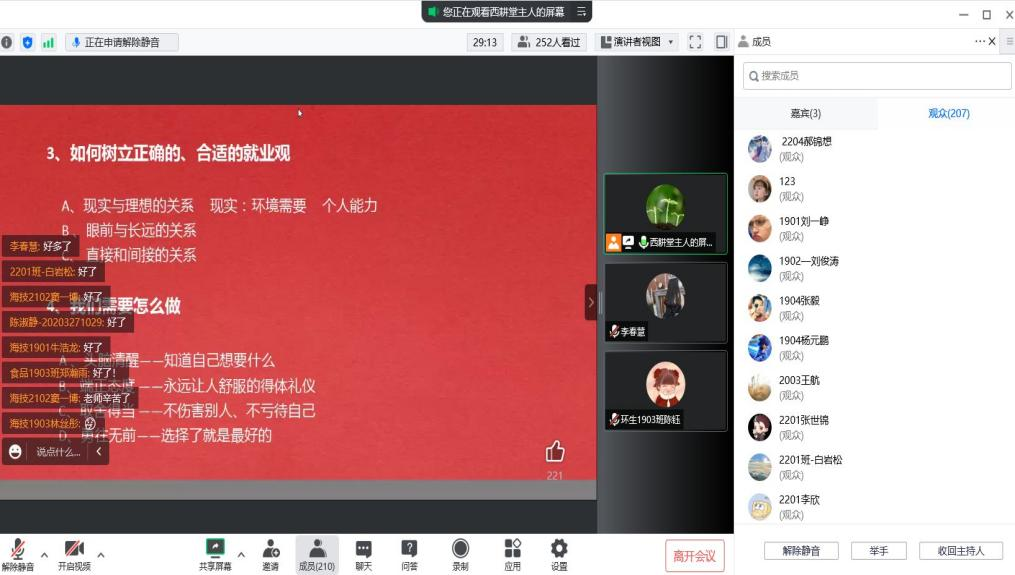 此次毕业生就业推进会共有210名同学参与,相信这些同学们对于就业有了一个更具体、更清晰的认识,增强了面对就业激烈竞争时的信心与能力。海洋科学与技术学院将持续高度重视同学们的就业工作,为同学们高质量就业提供有力保障。
