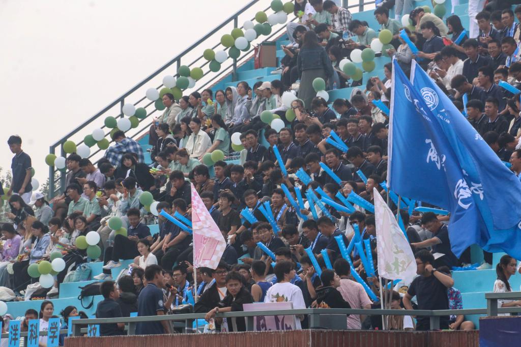 赛场上每一份荣誉的获得不只是运动员的努力拼搏,更有学院与老师的辛勤付出,默默无闻地做着后勤保障工作。运动会当天,他们和志愿者们一起早早地到操场上布置观众席,只为了让同学们有一个最佳的体验,只为了运动员们能毫无后顾之忧地尽情比赛。在用实际行动告诉运动健儿们学院与大家同在。运动会场上学长组织大家喝彩欢呼,后勤保障工作补给及时到位,无一不展示着海洋学院的斗志昂扬的精神面貌。