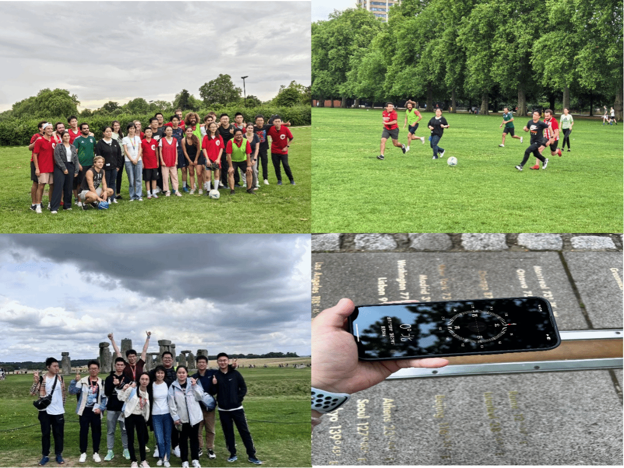 在理论学习与工厂实习之余,帝国理工学院也为访学团组织了文化交流活动。首先开展的是足球交流赛,同学们与来自帝国理工学院和墨西哥的其他学生相互组队、相互配合。这场足球赛不仅是一场竞技,更是一次通过足球运动连接多元文化的合作。访学团还参观了英国的几大标志性历史建筑,如巨石阵、格林威治天文台等等。巨石阵,这个史前时代最神秘的遗迹之一则展现出古人对天文的精妙运用,让师生切身感受到古人智慧的结晶。师生们在格林尼治天文台探索了其历史,了解了格林威治时间的由来,感受到了人类对宇宙探索的无限热情。