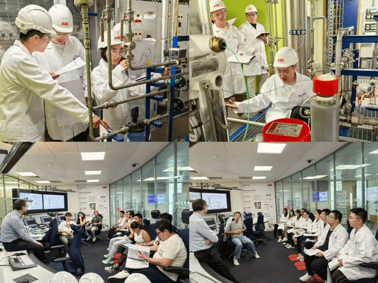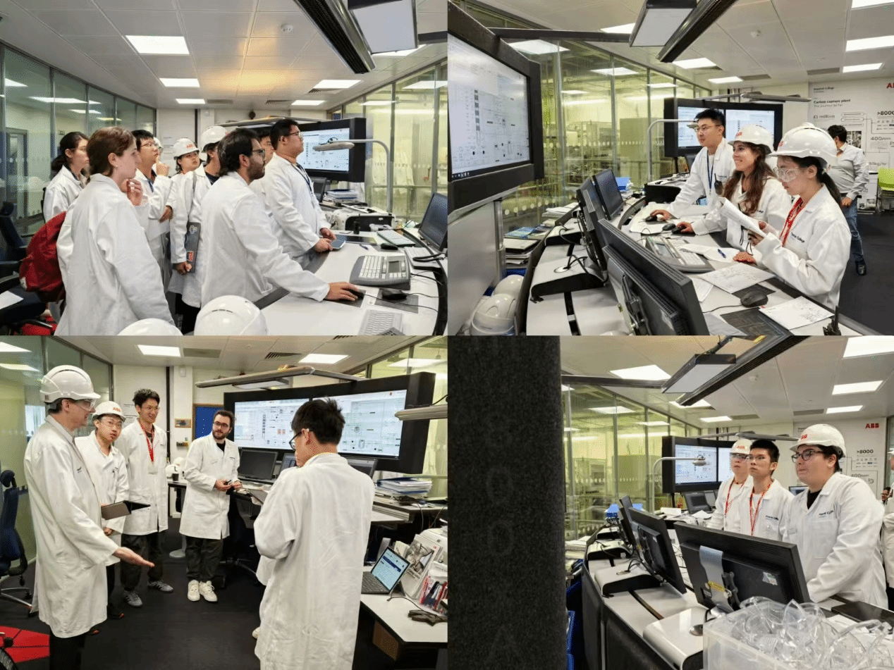在工厂实习阶段,Colin教授深入讲解了工厂中二氧化碳捕捉的原理,并教授同学们如何阅读和解析P&ID。同学们手持P&ID图纸,进入工厂对不同楼层的管路和仪表进行熟悉和核对,并向其他同学讲解自己所负责楼层的流程以及图纸与实地安装的差异所在。Colin教授还介绍了化工生产中常见的各种仪表,利用模型讲解各类仪表的内部构造及工作原理,并带领同学们进入工厂实地查看P&ID上各种仪表在实际生产中的工作环境和信号输出方式。