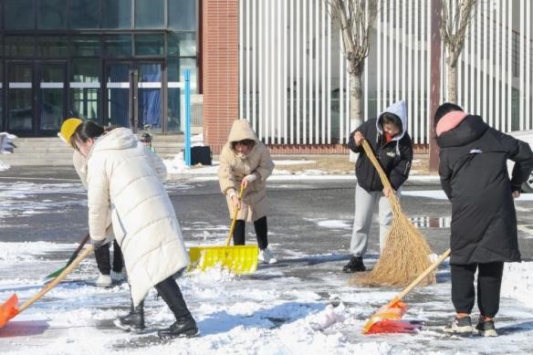 寒风凛冽,气温骤降,大雪纷飞而至。雪在净化空气的同时,也给道路交通带来诸多不便。为重点培养党员的责任感和志愿者的服务精神,确保返校同学出行安全,太阳集团于2月19日组织学生党员以及志愿者,在D05—D08进行扫雪活动。